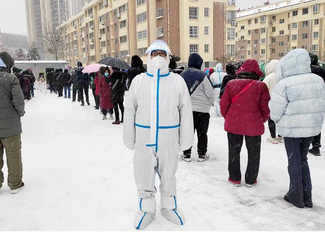 漫天風(fēng)雪,氣溫低至零下,依然擋不住廣大志愿者抗疫的腳步。11月30日以來,集團黨員干部職工全力以赴投身在抗疫第一線,在抗疫戰(zhàn)場上“連軸轉(zhuǎn)”。有的干部職工雖然不是黨員,卻在關(guān)鍵時刻沖鋒陷陣,第一時間到社區(qū)報到,支援抗疫工作。有的黨員從12月1日晚上8點就開始在社區(qū)卡口執(zhí)勤,一直干到次日凌晨1點,寒風(fēng)刺骨卻無怨無悔。有的黨員老公在單位值守,自己一個人在家照顧孩子,為了支援社區(qū)疫情防控,早上5點就把孩子叫醒讓對門鄰居幫忙照看,義無反顧的參與到抗疫工作中。有的黨員干部夫妻齊上陣,連續(xù)堅守在抗疫第一線。廣大黨員干部職工識大體顧大局,真誠奉獻、不辭辛勞,積極做好抗疫第一線的信息員、采購員、引導(dǎo)員、宣傳員,身體力行踐行“凝心聚力、踔厲奮發(fā)”的城建精神,以逆風(fēng)而行的擔(dān)當(dāng)扛起“文明威?!钡纳鐣?zé)任。