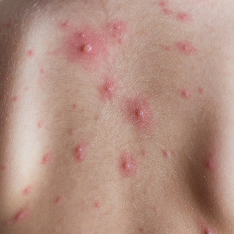 常見的痘痘顆粒大,分布散,