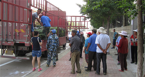 清晨6點職工已到達綠化工地現(xiàn)場, 準(zhǔn)備卸苗木