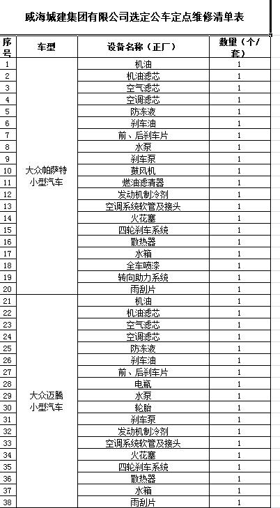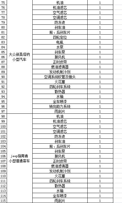 (4)采購(gòu)內(nèi)容:威海城建集團(tuán)10輛公車(chē)定點(diǎn)維修保養(yǎng)等服務(wù)內(nèi)容,采購(gòu)清單詳見(jiàn)附件。